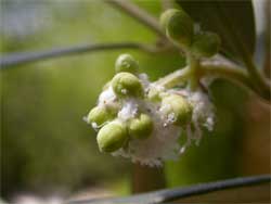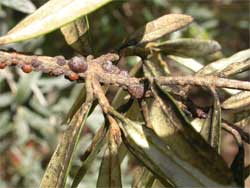 La Cochenille Noire cause des dégâts importants dans les oliveraies. L’insecte se nourrit de sève, et le miellat qu’il sécrète favorise le développement de champignons microscopiques de couleur « suie », la fumagine, qui asphyxie progressivement l’arbre. Des traitements appropriés et une surveillance du verger viennent facilement à bout de ce problème.